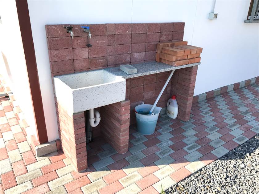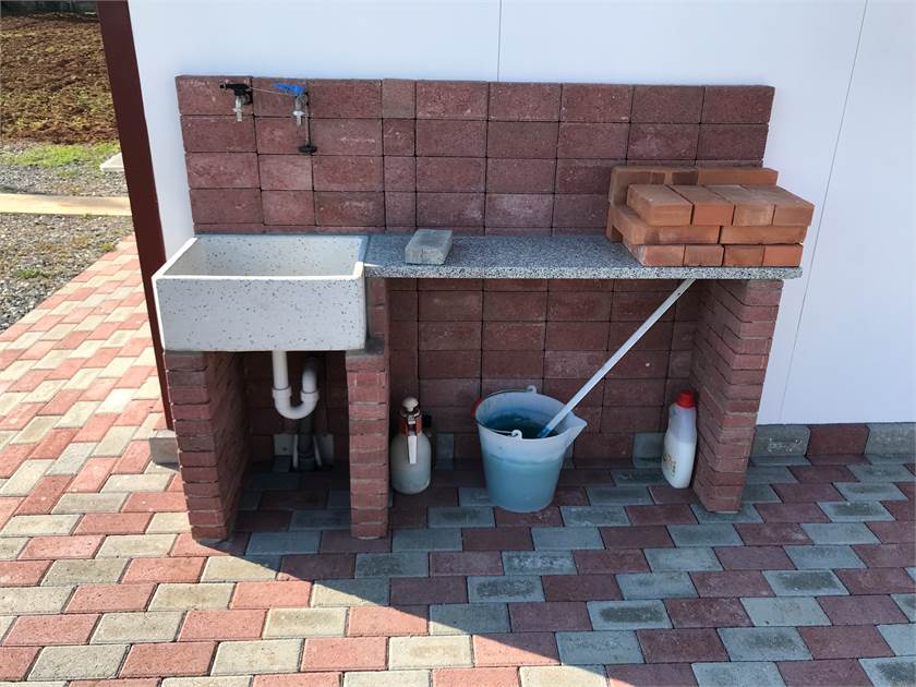 La parte esterna comprende un lavandino costruito sul posto artigianalmente acqua fredda e calda.