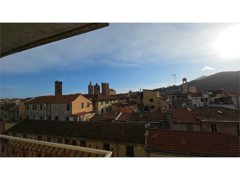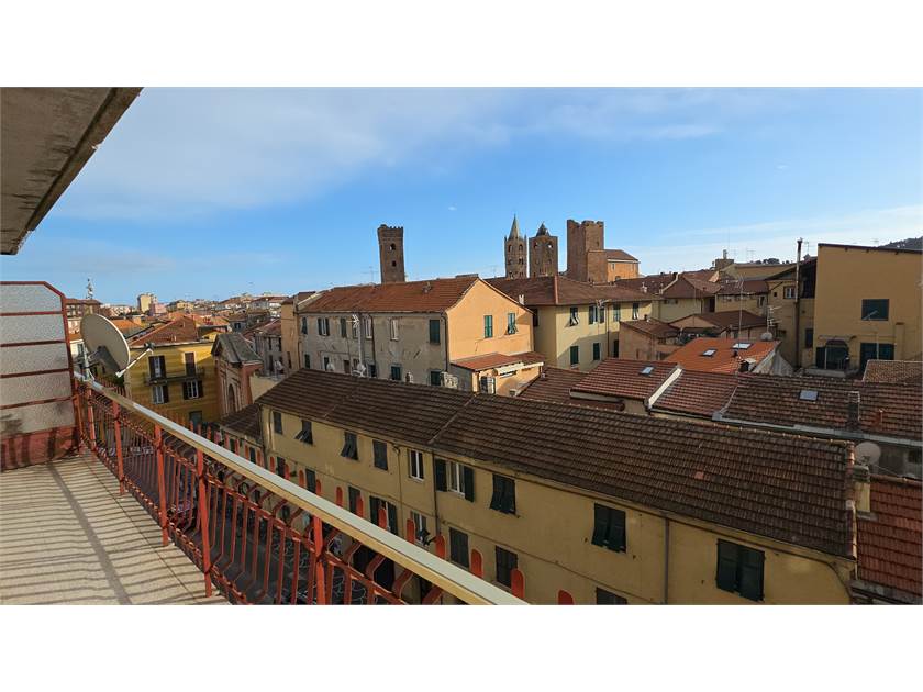 Dal balcone principale si gode una vista aperta su Via Fratelli Viziano, con scorci suggestivi sulle Torri medievali di Albenga e sulle colline circostanti: un panorama che dona respiro e luminosità a tutta la casa.
