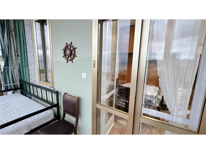 L’alloggio misura 55 m² commerciali e comprende soggiorno con angolo cottura, camera matrimoniale, bagno finestrato, ripostiglio e terrazzo vivibile verandato con vista mare.
