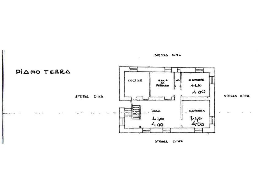 Al piano terra trovano collocazione un ampio Salone con camino, una Cucina abitabile, una sala da pranzo, due camere da letto matrimoniali ed un bagno.