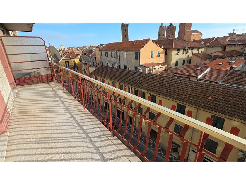 Dal balcone principale si gode una vista aperta su Via Fratelli Viziano, con scorci suggestivi sulle Torri medievali di Albenga e sulle colline circostanti: un panorama che dona respiro e luminosità a tutta la casa.
