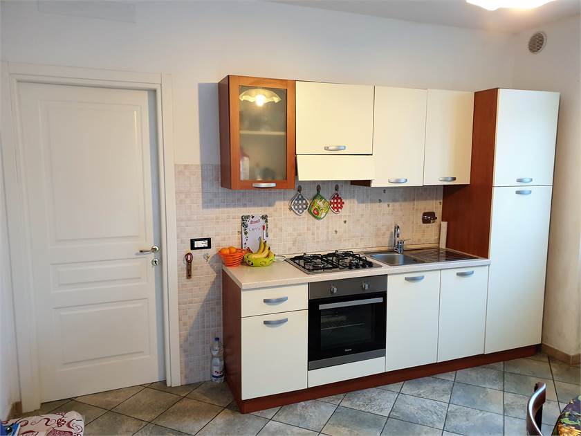 L'alloggio, privo di barriere architettoniche, sviluppa una superficie di 50 mq commerciali (45 mq netti) e risulta così composto: ingresso nel soggiorno con angolo cottura, disimpegno, camera da letto matrimoniale, cameretta singola, bagno con doccia e finestra. Le condizioni sono ottime in quanto l'appartamento è stato costruito nel 2011. L'alloggio viene venduto arredato. Il riscaldamento è autonomo ed avviene tramite un impianto di radiatori alimentati da una caldaia a gas metano.
